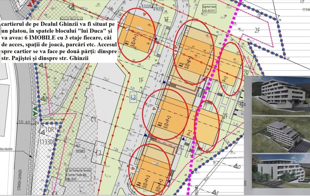 Documentațiile sunt depuse pe numele familiei Ponoran, din București (soții Florin Vasile și Mirela Anca Ponoran. În primă fază se va construi un bloc de 3 etaje, cu intrarea dinspre strada Pajiștei, urmând ca treptat pe Dealul Ghinzii să se ridice 6 blocuri, în total.