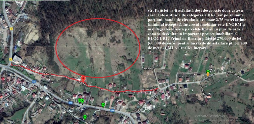 Strada Pajiștei poate fi considerată o stradă „de dos” și deservește câteva proprietăți, dar se pare că interesul imobiliar a făcut ca Primăria Bistrița s-o treacă în fața altor străzi la programul de asfaltare. Interesul unor dezvoltatori imobiliari a fost mai important decât interesul general și în continuare administrația Crețu este corijentă la capitolul infrastructură.