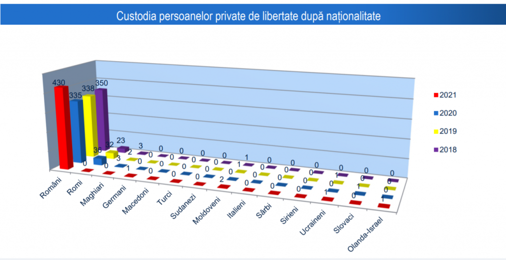 Din punct de vedere al naționalității, aproape 99 la sută dintre persoanele private de libertate sunt cetățeni români.