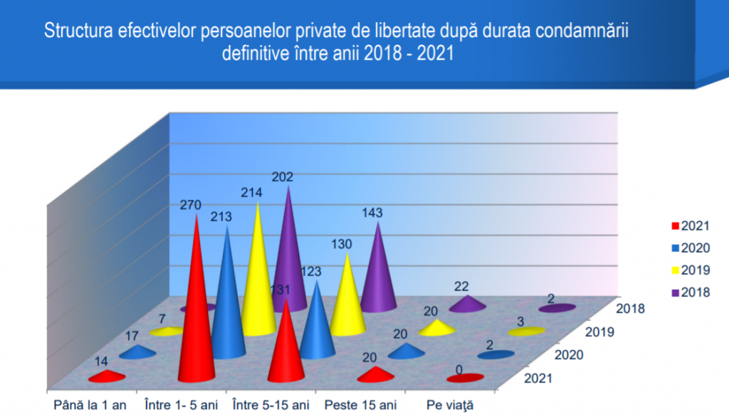 ”Dintre cele 435 de persoane private de libertate, toate erau condamnate definitiv. Din acestea, 14 erau condamnate până la un an, 270 între 1- 5 ani, 131 între 5-15 ani și 20 peste 15 ani”, se arată în bilanțul dat publicității de Penitenciarul Bistrița.