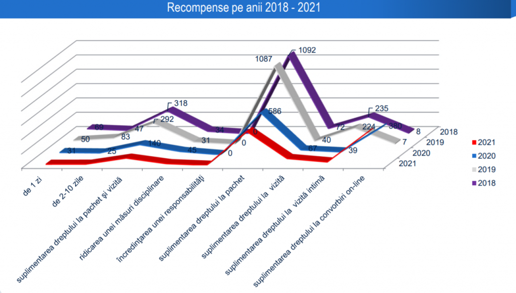 Totodată, anul trecut au fost acordate și circa 1.200 de recompense, cele mai multe vizând suplimentarea dreptului la pachet sau suplimentarea dreptului la convorbiri online.
