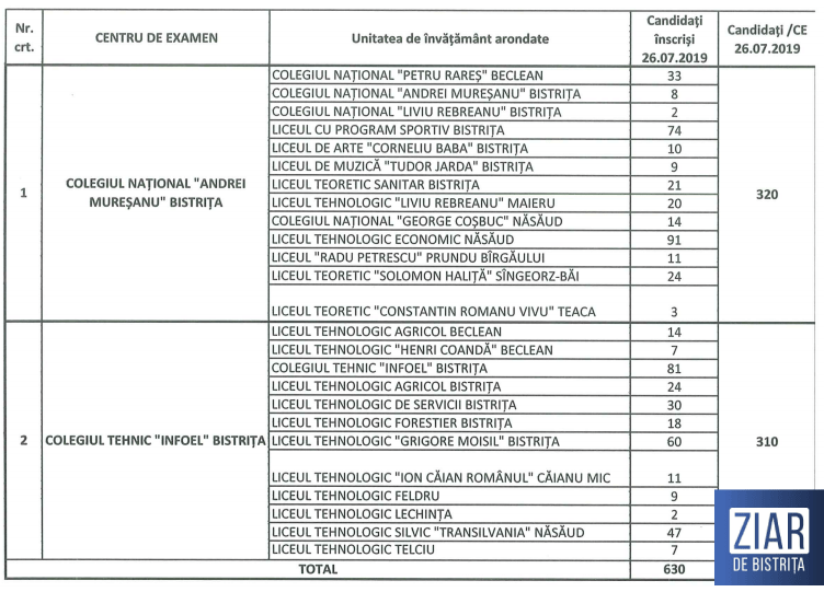 Centrul zonal de evaluare va funcționa la Colegiul Național Liviu Rebreanu din Bistrița.