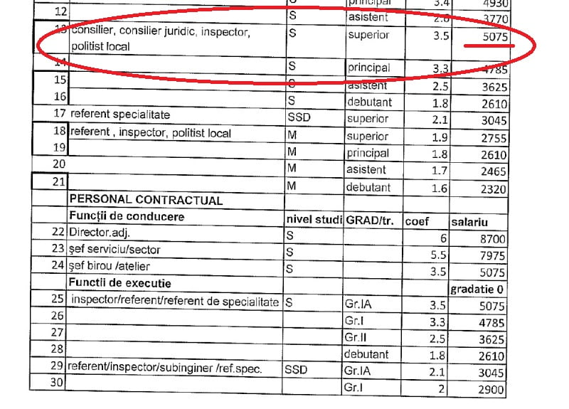 Primarul va avea cel mai mare salariu, de 13.050 de lei, după care urmează salariile celor 2 viceprimari. Administratorul public va încasa 11.310 lei, secretarul și arhitectul vor lua aproximativ 10.000 de lei.