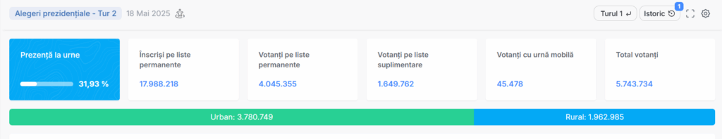 La nivel național, prezența la vot la ora 13:00 era de 26,35%, peste 4,7 milioane de români trecând deja pe la urne pentru a își exercita dreptul de vot.