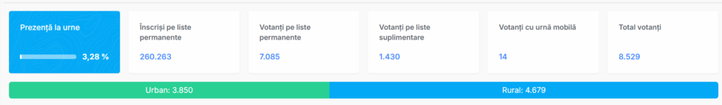 La nivel național, prezența la vot la ora 09:00 era de 5.09%, peste 915.000 de români trecând deja pe la urne pentru a își exercita dreptul de vot.