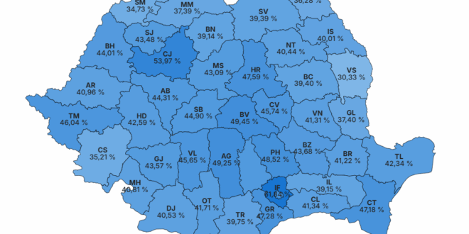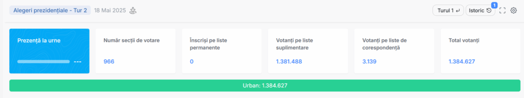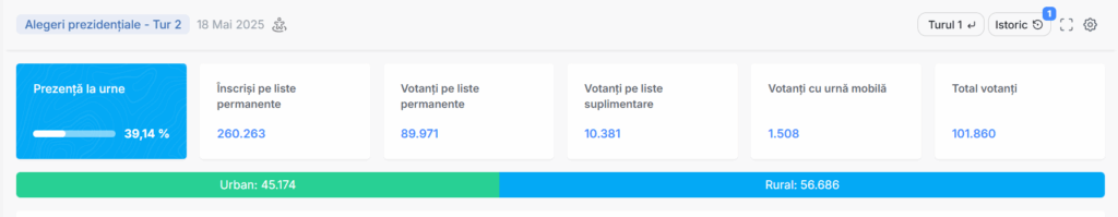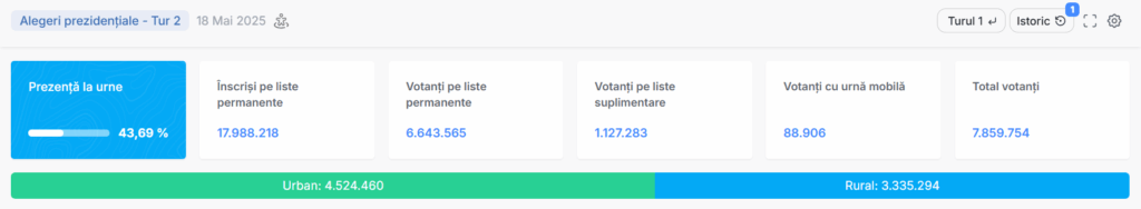 La nivel național, prezența la vot la ora 17:00 era de 43,69%, peste 7,8 milioane de români trecând deja pe la urne pentru a își exercita dreptul de vot.