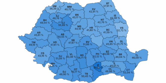 La nivel național, prezența la vot la ora 21:00, cu tot cu votul din diaspora, era de 53,21%, peste 9,5 milioane de alegători trecând pe la urne.