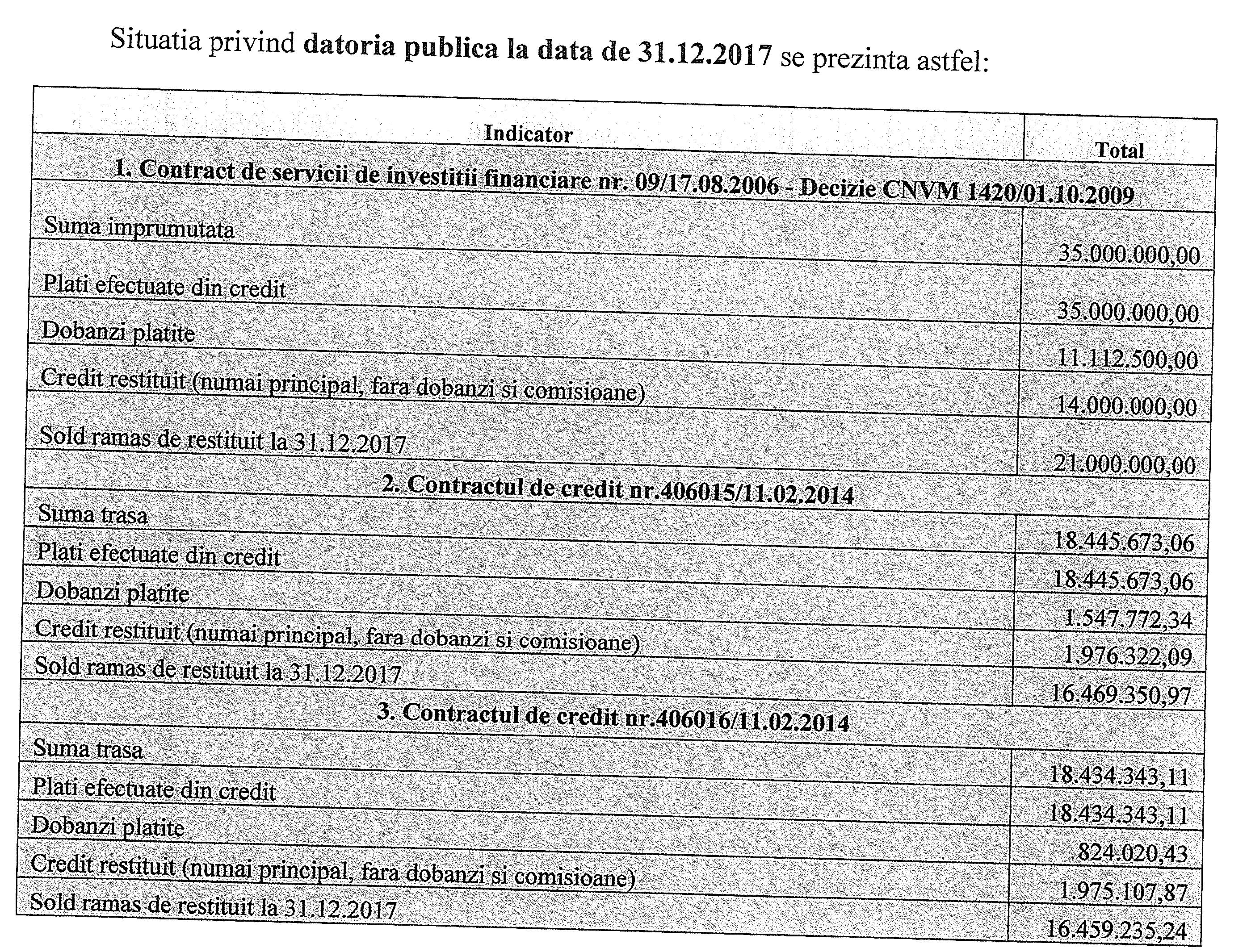 Situația privind datoria publică la finalul anului 2017 se prezintă astfel: