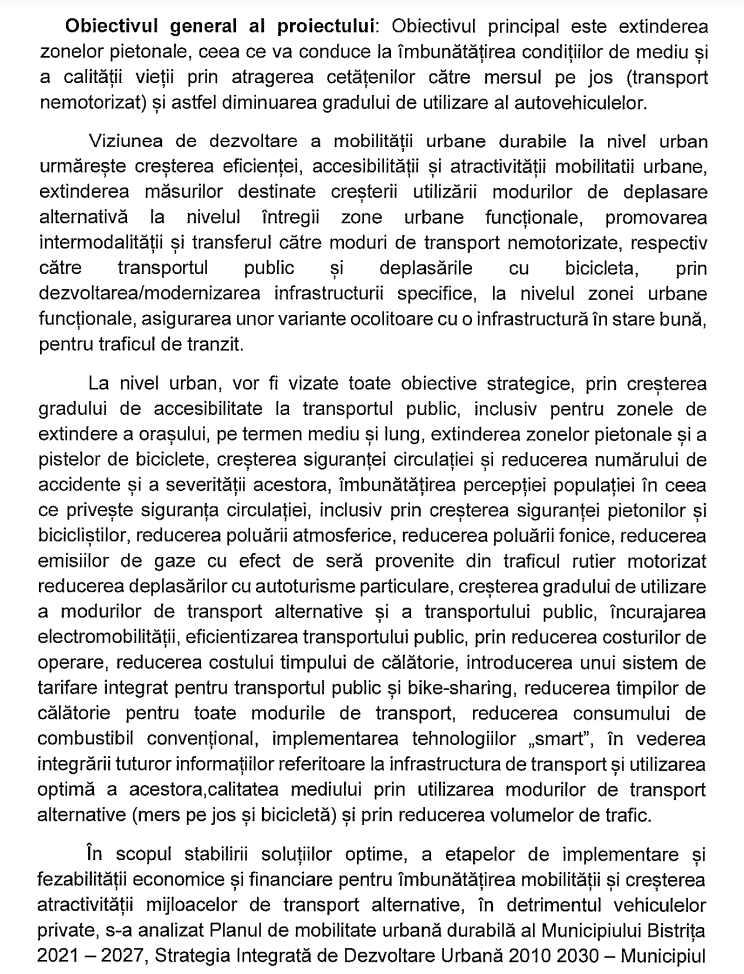 Obiectivul general al proiectului este dezvoltarea mobilității durabile în centrul istoric al municipiului prin: