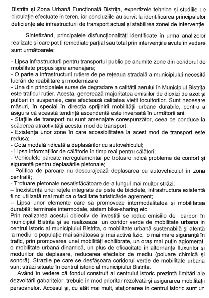 Primăria Bistrița a lansat licitația pentru proiectarea și execuția lucrărilor în cadrul proiectului ”Coridor verde de mobilitate urbană în centrul istoric al municipiului Bistrița”, un proiect finanțat din fonduri europene, care prevede revitalizarea centrului istoric al orașului din punct de vedere urbanistic, arhitectural și ecologic.