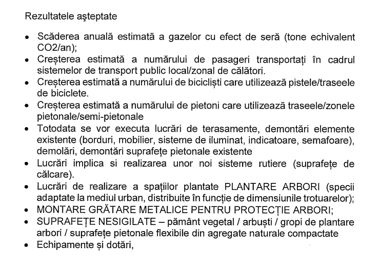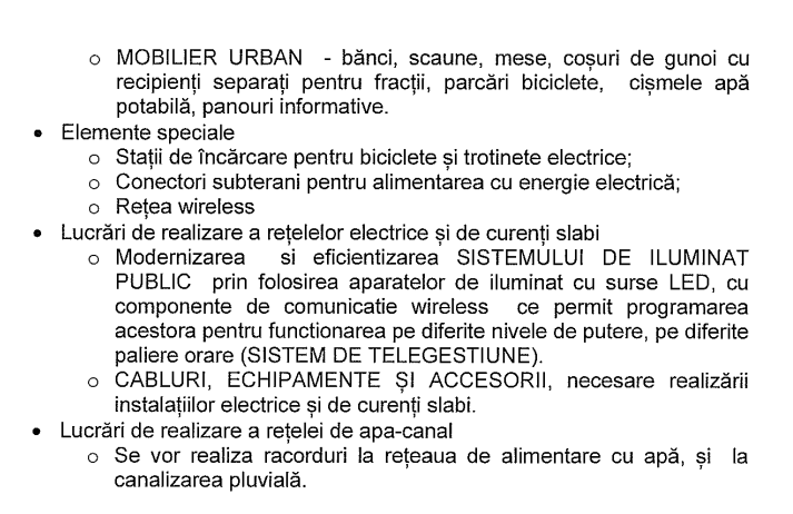 - modernizarea infrastructurii urbane (trotuare, piste de biciclete, iluminat public, stații de transport)