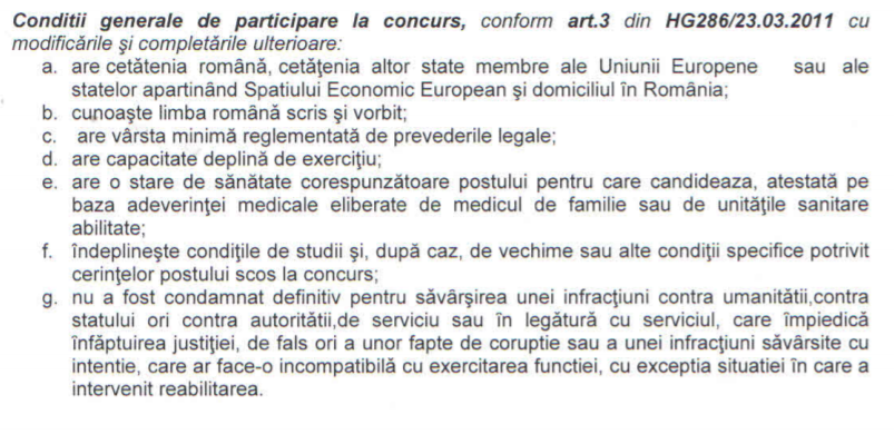Totodată, candidații trebuie să îndeplinească o serie de condiții pentru a putea participa la concurs:
