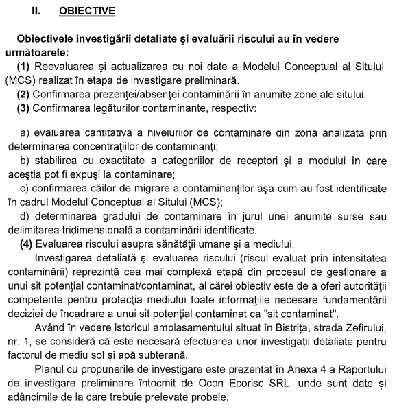 Investigațiile detaliate urmăresc confirmarea existenței și intensității contaminării, precum și analiza probabilității apariției efectelor negative asupra mediului.