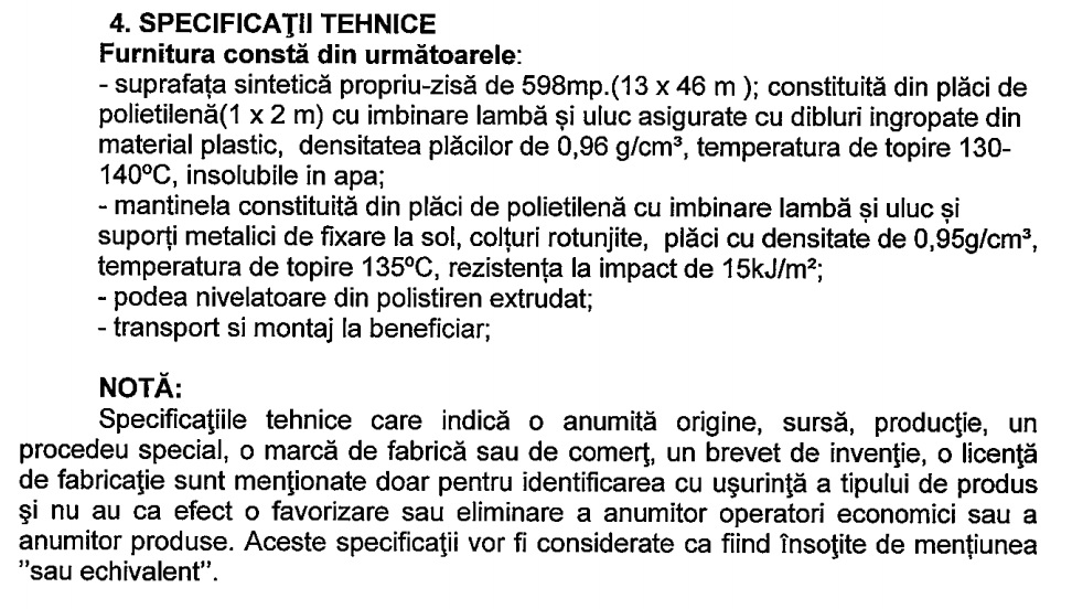 În ceea ce privește patinoarul sintetic, potrivit caietului de sarcini anexat licitației publice, investiția este necesară pentru a oferi celor aproximativ 15.000 de copii din Bistrița și alte oportunități de a își petrece timpul liber.