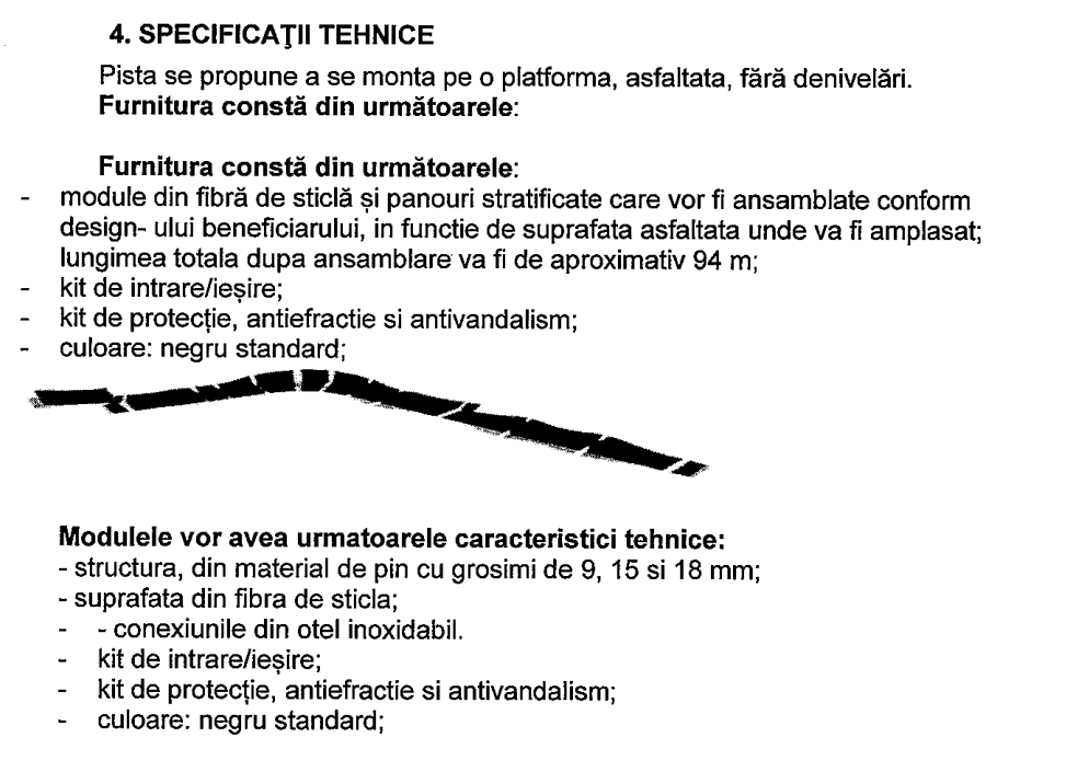 ”Având în vedere că până la această dată municipiul Bistrița nu deține un spațiu amenajat pentru sportul cu role, iar potrivit datelor statistice în municipiu există un număr de 8.741 copii cu vârste cuprinse între 6 și 14 ani și un număr de 6.274 adolescenți cu vârste între 14 și 20 de ani, mulți dintre aceștia fiind iubitori ai sportului cu role – skateboard, este necesară amenajarea unui astfel de spațiu prin achiziția și montajul unui circuit pumptrack modular pentru biciclete, trotinete și skateboard, având o lungime totală de aproximativ 94 m”, se arată în caietul de sarcini.