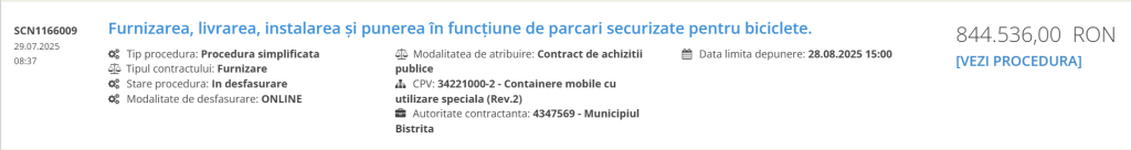 Obiectivul achiziției este dezvoltarea unei rețele integrate de parcări inteligente pentru biciclete.