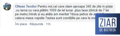 ”Pentru noi, cei care stăm aproape 340 de zile în piață, cu iarnă cu vară, plătim 1.000 de lei lunar, plus taxa zilnică de 7 lei pe metru, întreb și eu, atâta am meritat? Doua petice de asfalt? Câteva mese vopsite? Astea sunt condițiile pe care le merităm?”, spune Teodor Oltean, într-un comentariu la postarea lierabului Ioan Turc.
