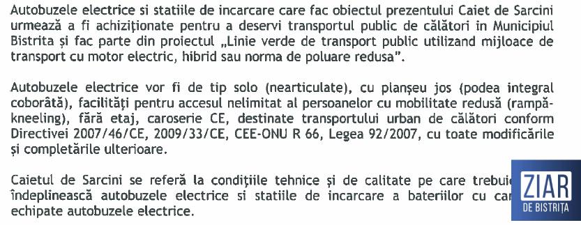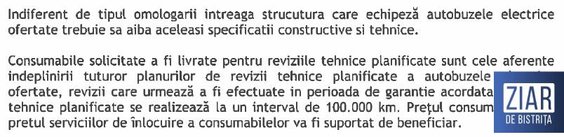 Revenind la procedura de licitație publică, valoarea estimată a contractului pentru achiziția autobuzelor electrice și amenajarea stațiilor de încărcare este de 21,7 milioane lei, iar ofertele pot fi depuse până la data de 17 martie. Potrivit caietului de sarcini, ofertele trebuie să țină cont de o serie de condiții: