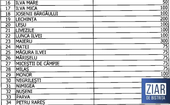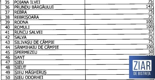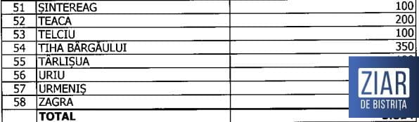 ”În urma analizării solicitărilor transmise, propunerea de repartizare de sume către unitătile administrativ-teritoriale se referă în principal la asigurarea cheltuielilor de functionare ale acestora, cu precizarea că aceste sume se vor cuprinde în bugetele de venituri şi cheltuieli ale unităţilor administrativ-teritoriale în trimestrul IV al anului 2019”, se arată în nota de fundamentare a proiectului de hotărâre privind repartizarea sumei de 5,8 milioane lei către unitățile administrativ-teritoriale din Bistrița-Năsăud.