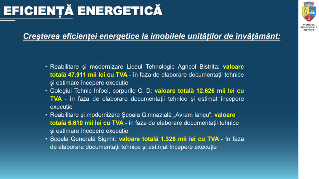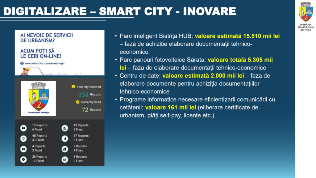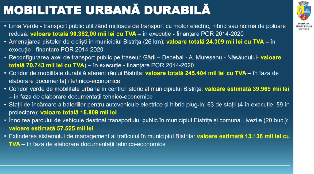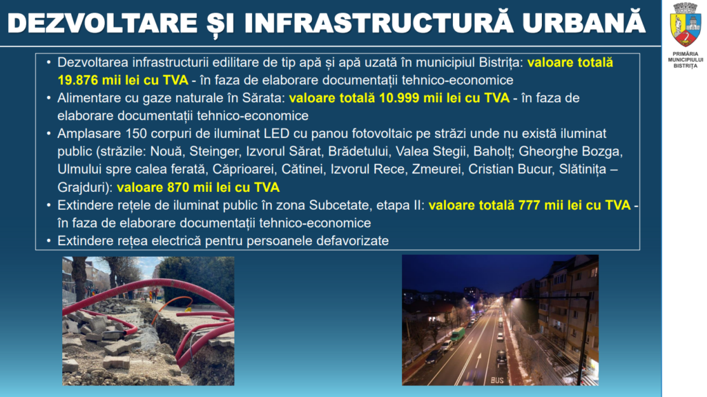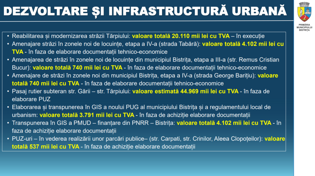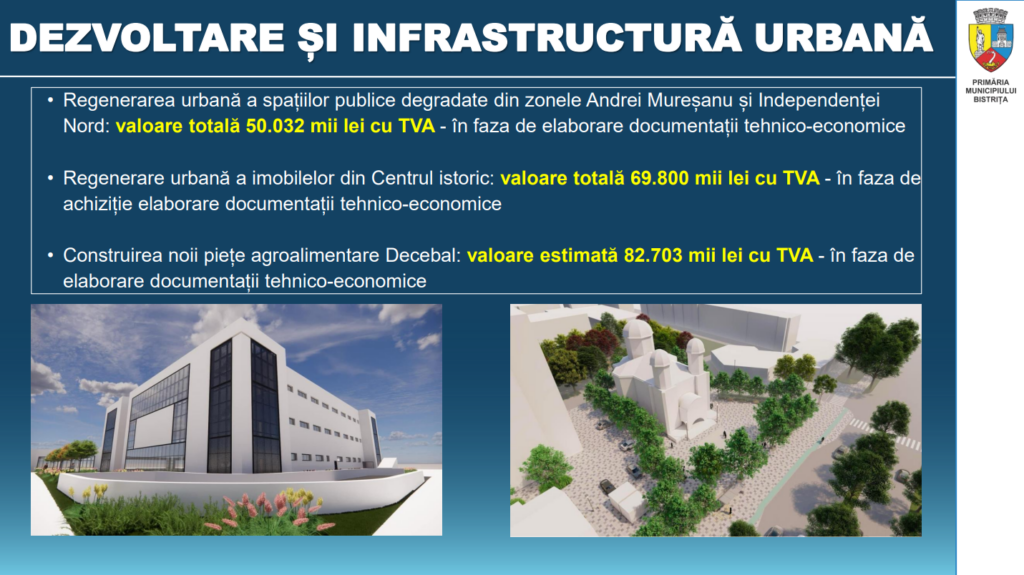În conferința de presă primarul a prezentat și investițiile pe care municipalitatea le propune anul acesta și anii viitori.