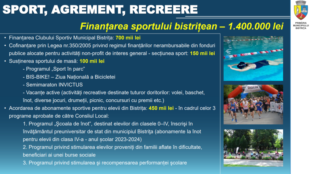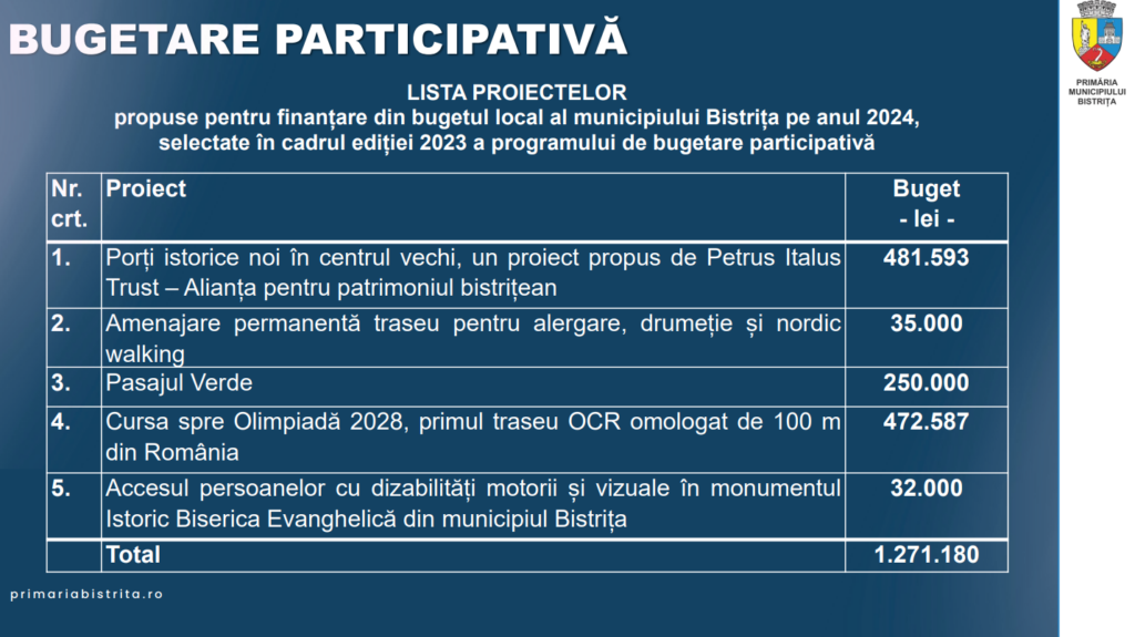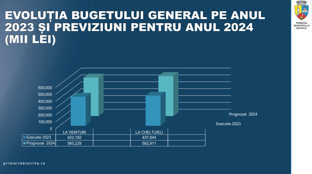 Primăria Bistrița organizează joi și o dezbatere publică pe marginea proiectului de buget pe anul 2024. Ulterior, proiectul va fi analizat și supus votului în Consiliul Local Bistrița, urmând să fie adoptat.