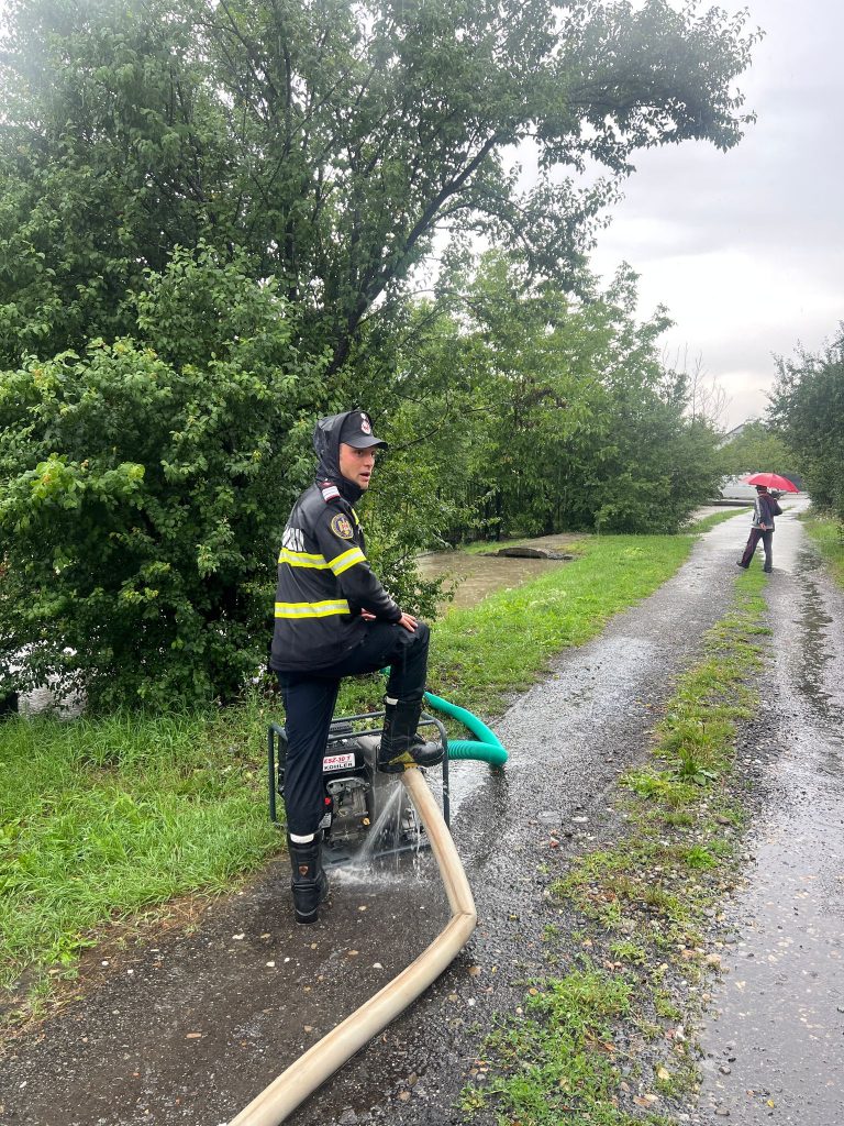 Echipajele ISU Bistrița-Năsăud, împreună cu echipele SVSU și operatorii de utilități, intervin în teren pentru evacuarea apei și limitarea efectelor produse.