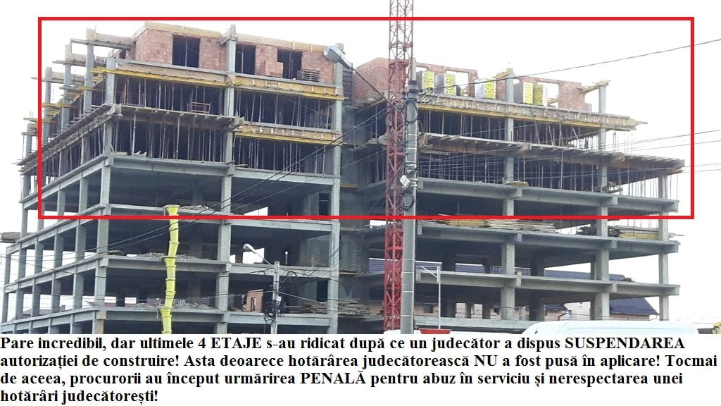 Primăria NU a pus în aplicare hotărârea judecătorească și s-au mai construit 3 etaje! Într-un final a început urmărirea PENALĂ pentru abuz în serviciu și ne-respectarea hotărârii judecătorești!