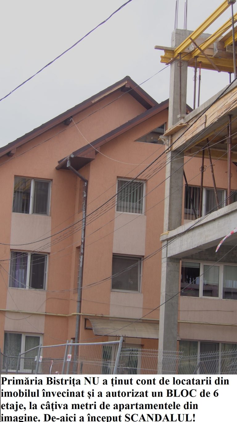 Autorizația de construire e SUSPENDATĂ, dar cu toate astea, BLOCUL e ridicat! 3 etaje s-au construit DUPĂ pronunțarea instanței, în timp ce autoritățile din Bistrița dormeau de-amiaz’!