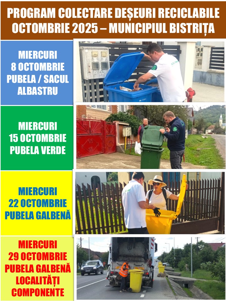 Programul de colectare a deșeurilor reciclabile pentru municipiul Bistrița și localitățile componente, în octombrie