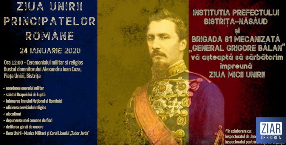 La data de 24 ianuarie se sărbătorește Ziua Unirii Principatelor Române, eveniment cunoscut și sub numele de ”Mica Unire”. Cu acest prilej, Instituţia Prefectului judeţului Bistriţa-Năsăud și Brigada 81 Mecanizată ”General Grigore Bălan” organizează o serie de manifestări dedicate acestei zile, când se vor împlini 161 de ani de la Unirea Principatelor.