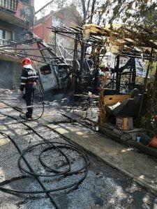 Alerta a fost dată în jurul orei 11:40, iar în momentul în care echipajele de intervenție au sosit la fața locului, incendiul se manifesta violent. Flăcările au cuprins un autoturism parcat în curtea unei case, după care s-au extins.