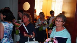 Radu Moldovan a oferit flori tuturor doamnelor care au depus jurământul și le-a sărutat pe obraz, iar la finalul ședinței, consilierii județeni au servit șampanie pe holurile instituției și s-au felicitat reciproc pentru rezultatul obținut.