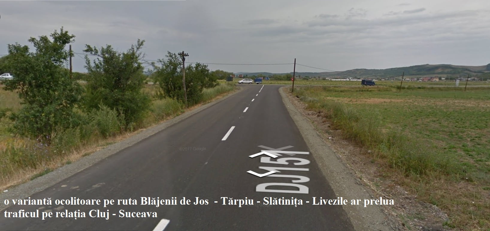 Variantă ocolitoare pentru ruta Cluj – Suceava s-ar face prin: Livezile – Slătinița – Tărpiu – Blăjenii de Jos (50.000 de lei costul documentațiilor de pre-fezabilitate).