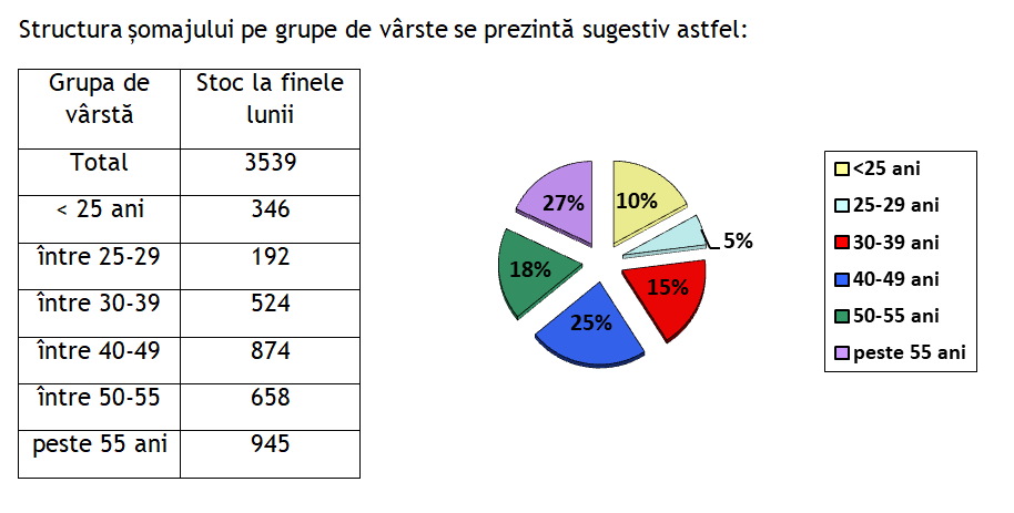 Datele agenției arată că majoritatea șomerilor au peste 55 de ani, urmați de cei cu vârste între 40 și 49 de ani.