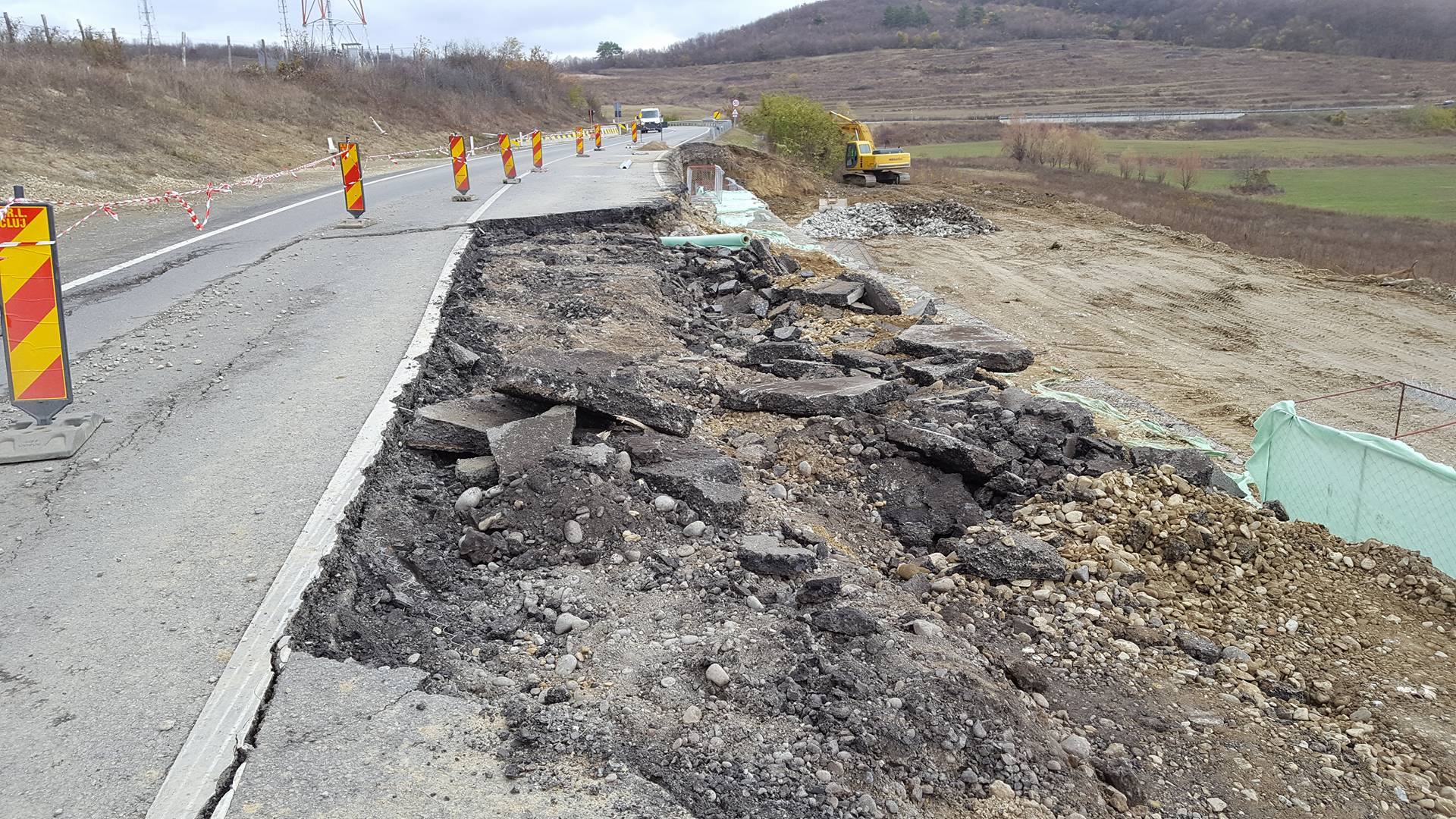 Constructorul acuză proprietarul terenului din vecinătate acelui sector, care ar fi realizat anumite lucrări ce au afectat structura de rezistență, motiv pentru care o bandă s-a prăbușit. Teoria pare greu de crezut, deoarece la scurtă vreme de la inaugurare au apărut fisuri pe mai multe porțiuni ale acestui drum, în toată zona Dealurilor Tecii.