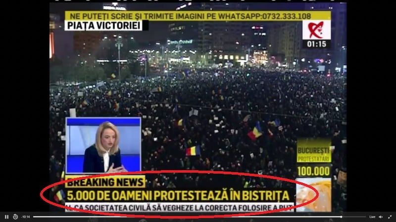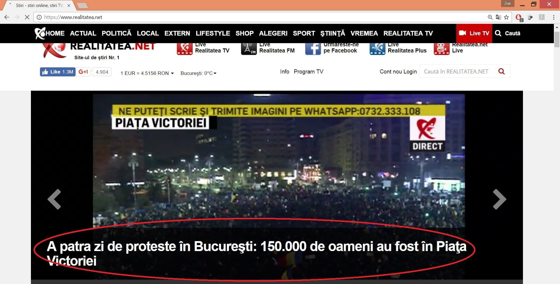 Realitatea TV a anunțat 5.000 de oameni în stradă, la Bistrița! Cifre umflate și la București: DIGI: 30.000 , TVR 1: 120.000, Realitatea TV: 150.000!