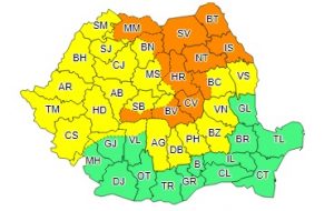 Fenomene vizate: ploi abundente. În jumătatea de nord a Moldovei, zona Carpaților Orientali, local în Maramureș și în sud-estul Transilvaniei temporar va ploua abundent și se vor acumula cantități de apă de 40…50 l/mp și pe arii restrânse 60…70 l/mp.