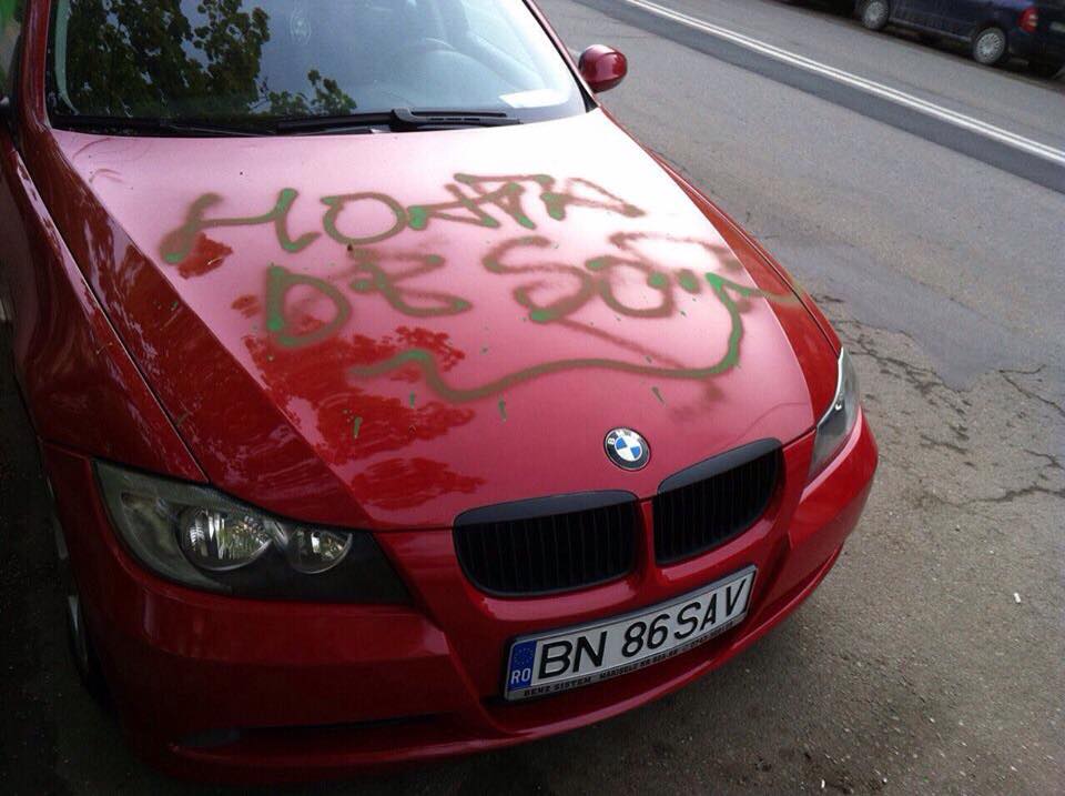 Secretara lui Radu Moldovan a avut parte de un eveniment neplăcut: BMW-ul său luxos a fost VANDALIZAT! Persoane necunoscute i-au scris injurii pe capota și pe portierele mașinii sale, parcată undeva în zona Decebal. Ioana Savu este originară din Sângeorz-Băi, absolventă a Facultății de Științe Economice din Cluj-Napoca și unul din oamenii de bază ai președintelui Consiliului Județean.