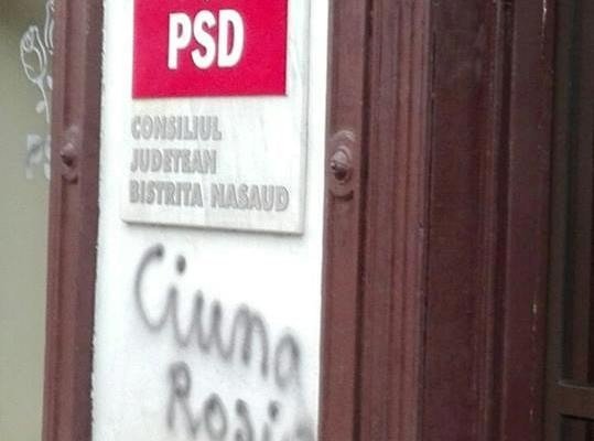 Mesaj dur scris pe sediul P.S.D: “Ciuma Roșie!” Organizația a chemat Poliția și a făcut plângere pentru vandalizare!