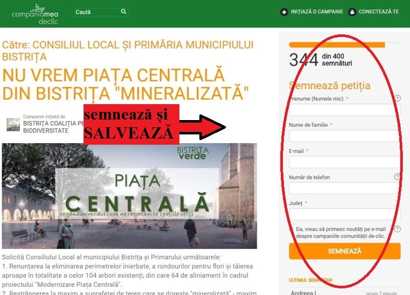 Prin semnarea unei petiții, solicităm Consiliului Local al municipiului Bistrița și Primarului următoarele: