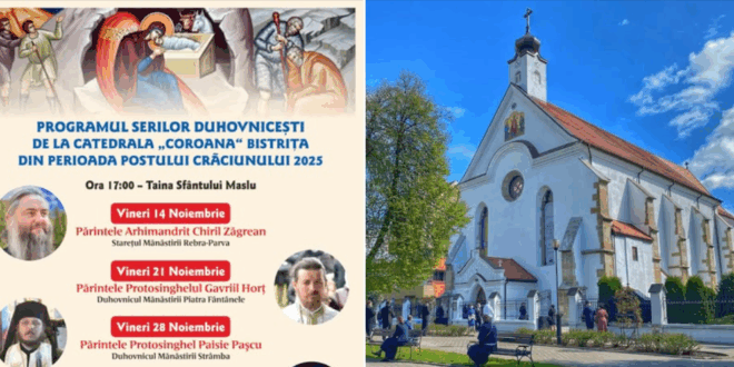 Protopopiatul Ortodox Român Bistriţa, în parteneriat cu Catedrala Coroana, organizează și în acest an tradiționalele seri duhovnicești din perioada Postului Nașterii Domnului, întâlniri care îmbină rugăciunea cu dialogul pe teme duhovnicești, alături de invitați speciali.