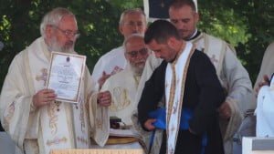 Protopopul Vidican: „Am mai spus, Înaltpreasfinția Voastră, că părintele Mileșan este unul dintre cei mai harnici preoți din generația noastră. A încărunțit construind, târnosind și sfințind biserici și case parohiale. Înaltpreasfinția Voastră, pentru osteneala părintelui Constantin și pentru jertfa familiei și fiilor lui, propunem să-i acordați cea mai mare distincție pe care o acordați unui preot de mir: Crucea Transilvană!”