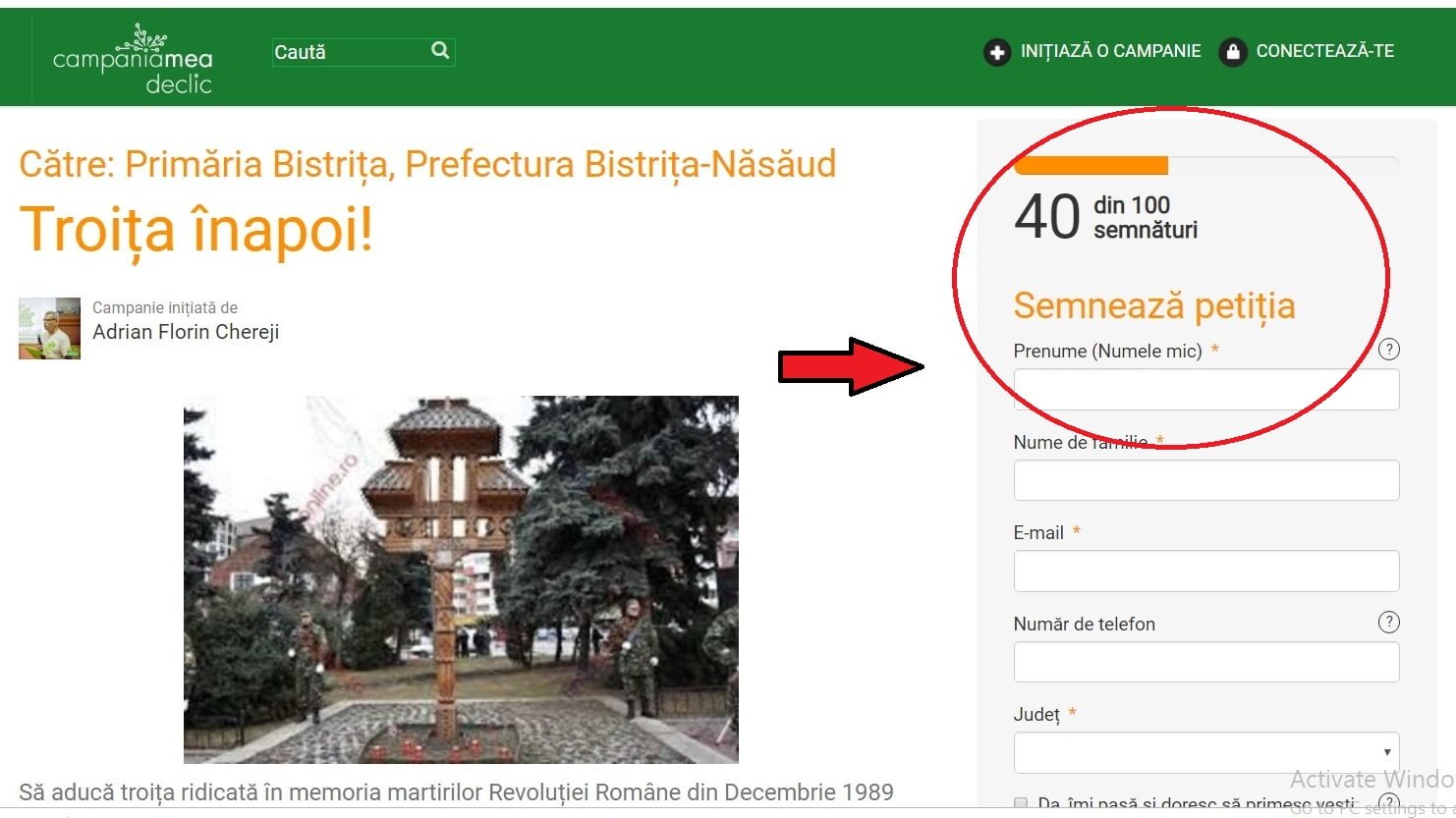 Pe pagina campania de clic se adună semnături pentru ca monumentul să fie adus înapoi în Piața Petru Rareș… acolo unde s-a adunat mulțimea în 1989.