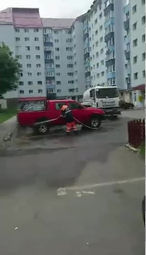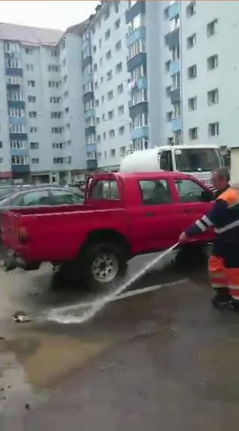 Un bistrițean a filmat cum un angajat al companiei spăla mașina într-o parcare din municipiu. Acesta a dat un jet de apă pe o camionetă plină de noroi, probabil la rugămintea proprietarului. Operațiunea poate fi amendată de Poliția Comunitară, conform Regulamentului de bună-gospodărire a municipiului: „spălarea autovehiculelor pe malurile râului Bistriţa, pe domeniul public şi/sau pe spaţiile verzi se amendează cu sume cuprinse între 100 și 1.000 de lei.”