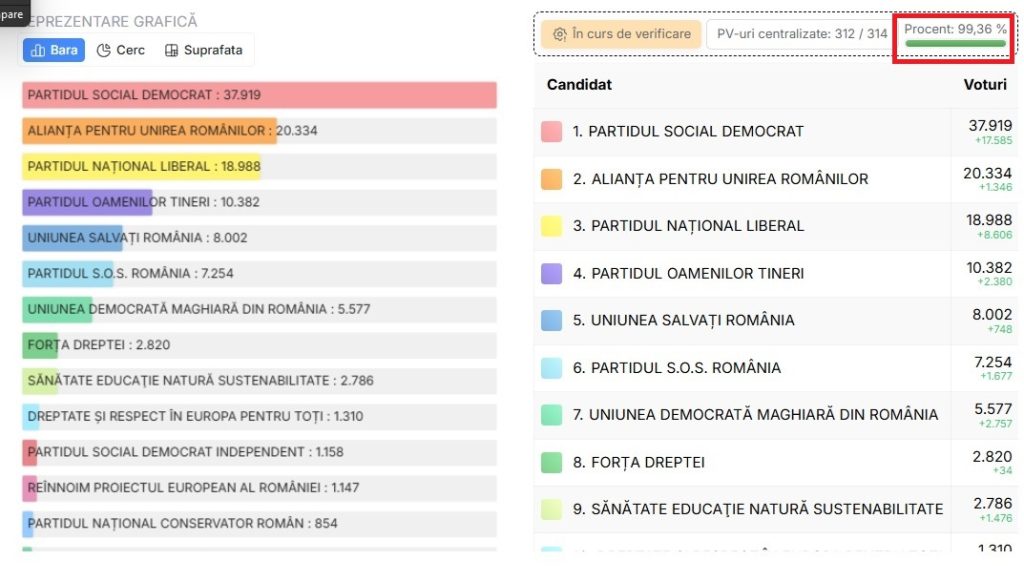 foto: rezultate parțiale, după ce s-au numărat 99.3% din voturi!