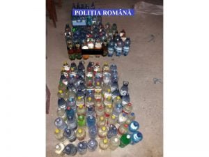 Cantitatea de 300 litri de lichid incolor cu miros specific de alcool a fost indisponibilizată de polițiști.
