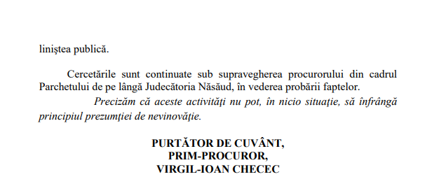 Parchetul de pe lângă Judecătoria Năsăud a făcut precizări despre caz:
