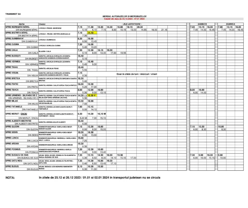 25.12.2023 și 01.01.2024 nu se circulă (zile libere și pentru șoferi);