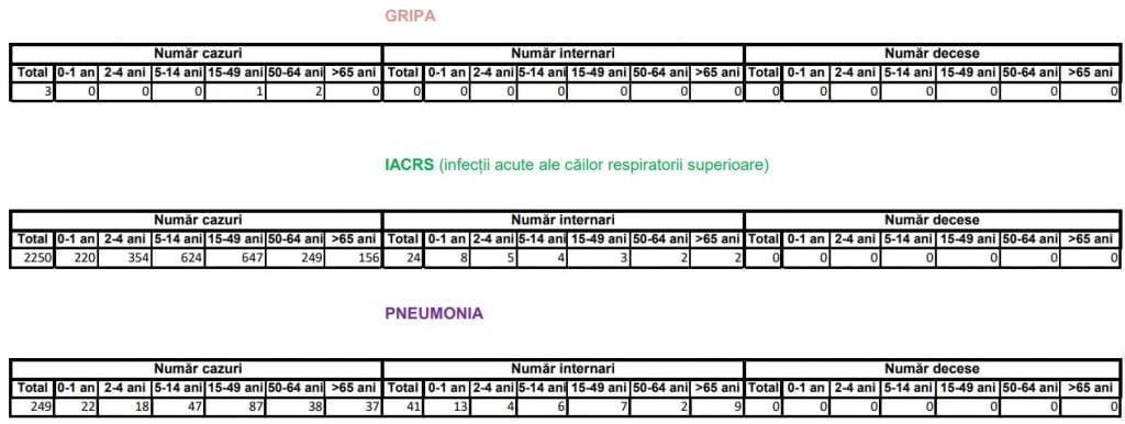 În săptămâna 14-20 ianuarie, nu a fost raportat niciun deces cauzat de afecțiuni respiratorii.