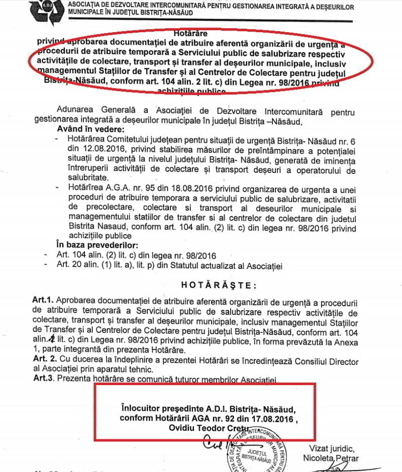 Nu mă mai miră nimic, doar că, jurist fiind, am sperat că la ADI Deşeuri există oameni competenţi care inteleg că nici un document făcut in pripa pe un colţ de masă nu are valoare legală în faţa unor instituţii abilitate să stabilească acest lucru, iar Consiliul Naţional de Soluţionare a Contestaţiilor este o asemenea instituţie.